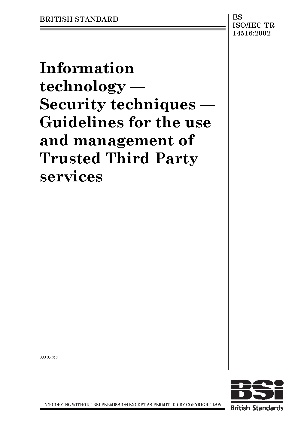 Information technology. Security techniques. Guidelines for the use and management of trusted third party services