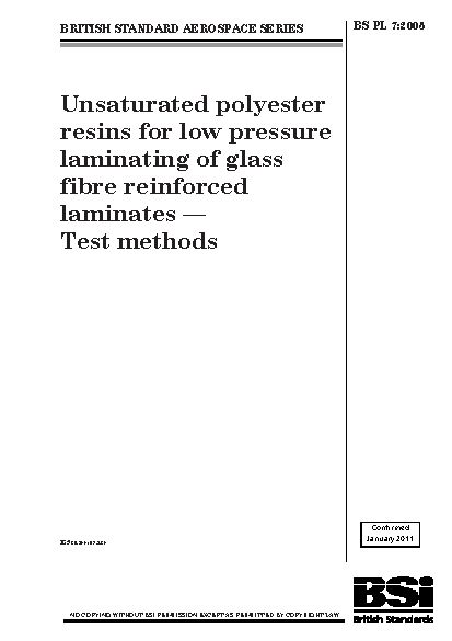 Unsaturated polyesters;Reinforcing materials;Air transport engineering;Glass fibres;Strength of materials;Aircraft components;Pressure-sensitive materials;Plastics;Construction systems parts;Test methods