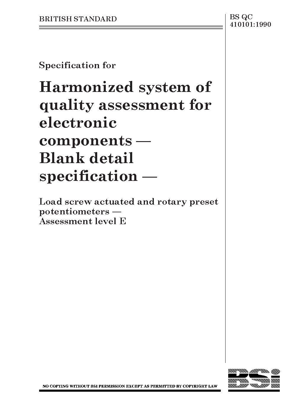 Specification for harmonized system of quality assessment for electronic components. Blank detail specification. Load screw actuated and rotary preset potentiometers. Assessment level E