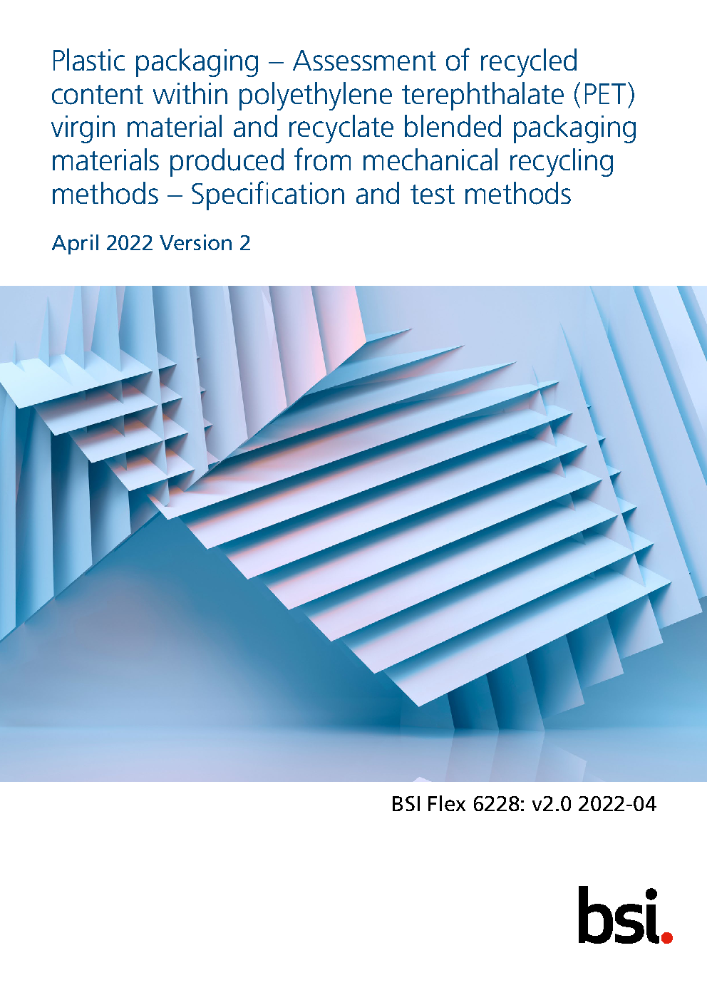 Plastic packaging. Assessment of recycled content within polyethylene terephthalate (PET) virgin material and recyclate blended packaging materials produced from mechanical recycling methods. Specification and test methods