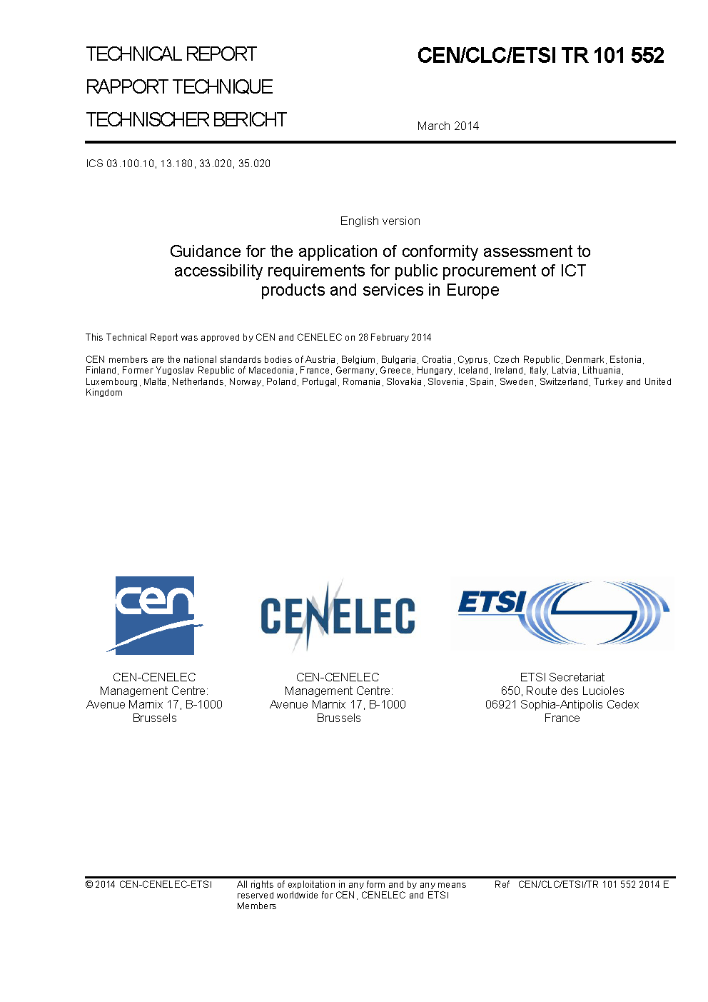 CEN/CLC/ETSI/TR 101 552:2014