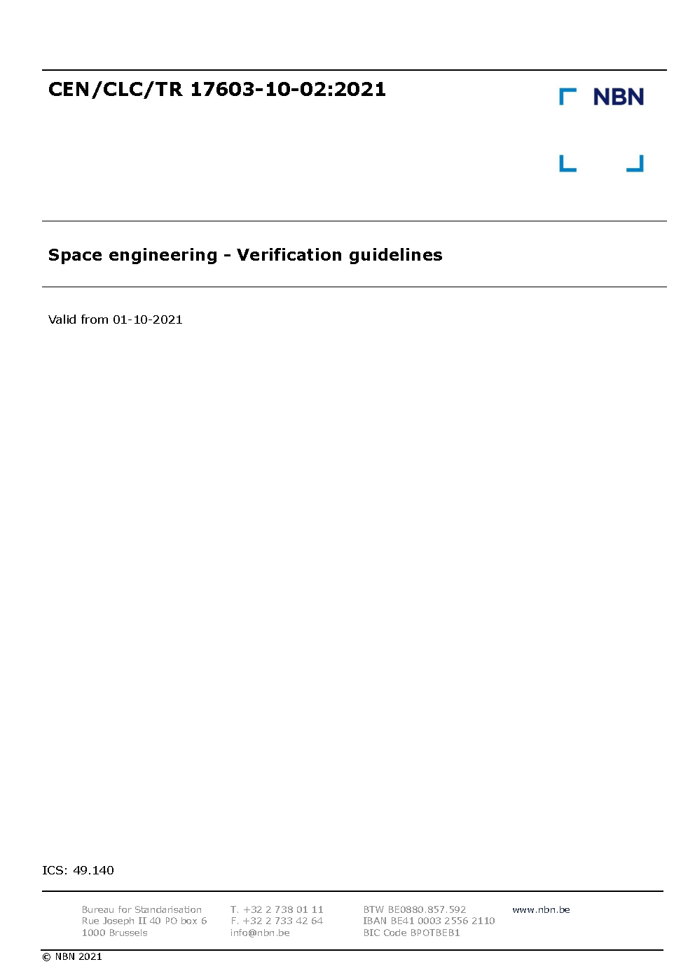 | Publisher | Bureau de Normalisation Belge (NBN) |