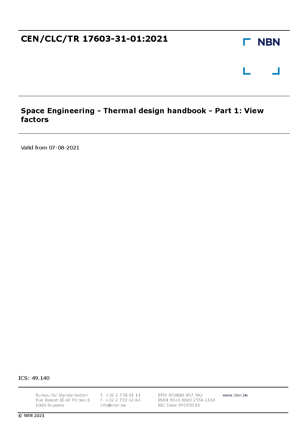 | Publisher | Bureau de Normalisation Belge (NBN) |