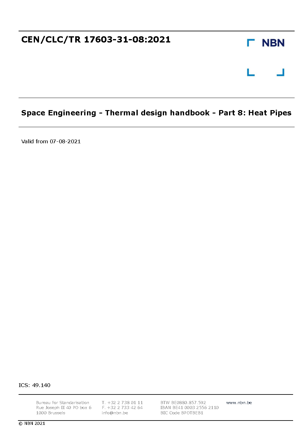 Space Engineering - Thermal design handbook - Part 8: Heat Pipes