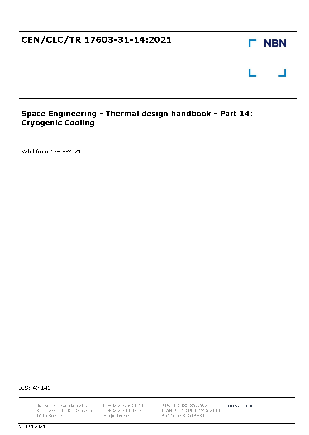TR 17603-31-01 Part 14 Thermal design handbook – Part 14: Cryogenic Cooling