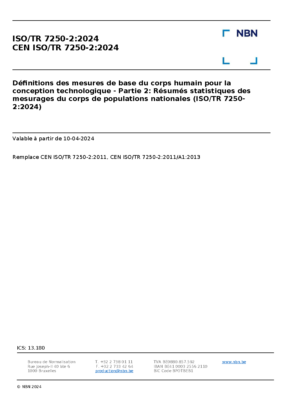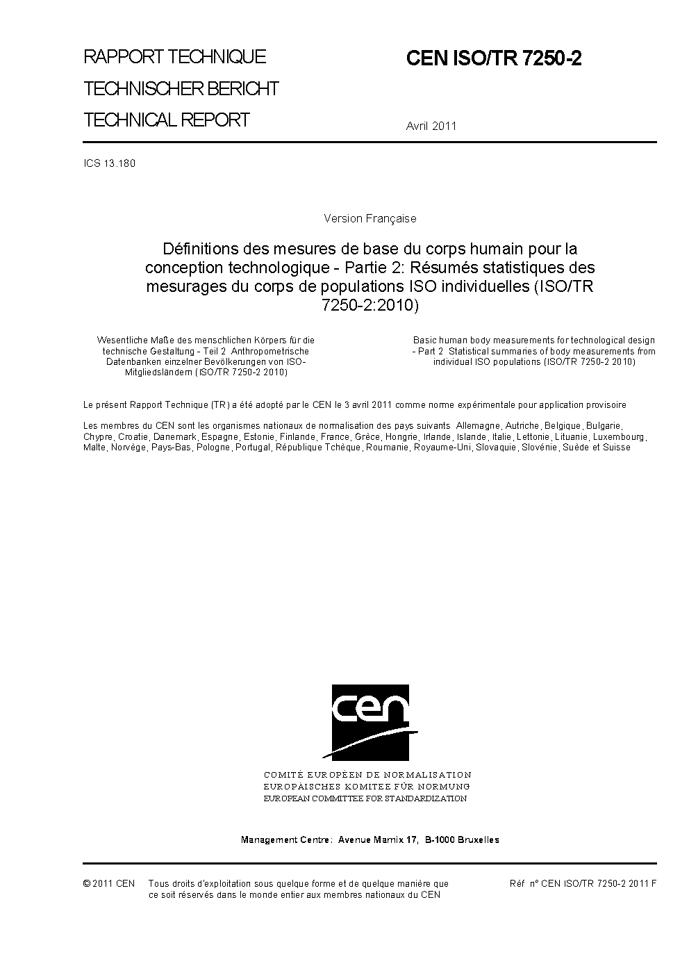 Basic human body measurements for technological design - Part 2: Statistical summaries of body measurements from national populations (ISO/TR 7250-2:2010/Amd 1:2013)