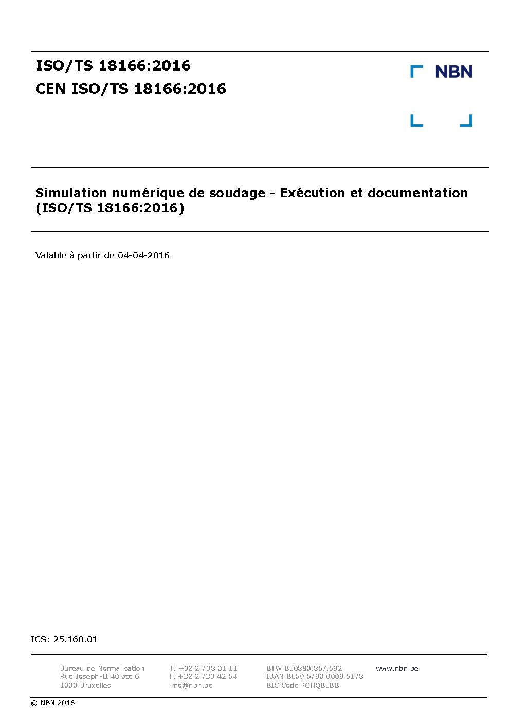 Numerical welding simulation - Execution and documentation (ISO/TS 18166:2016)