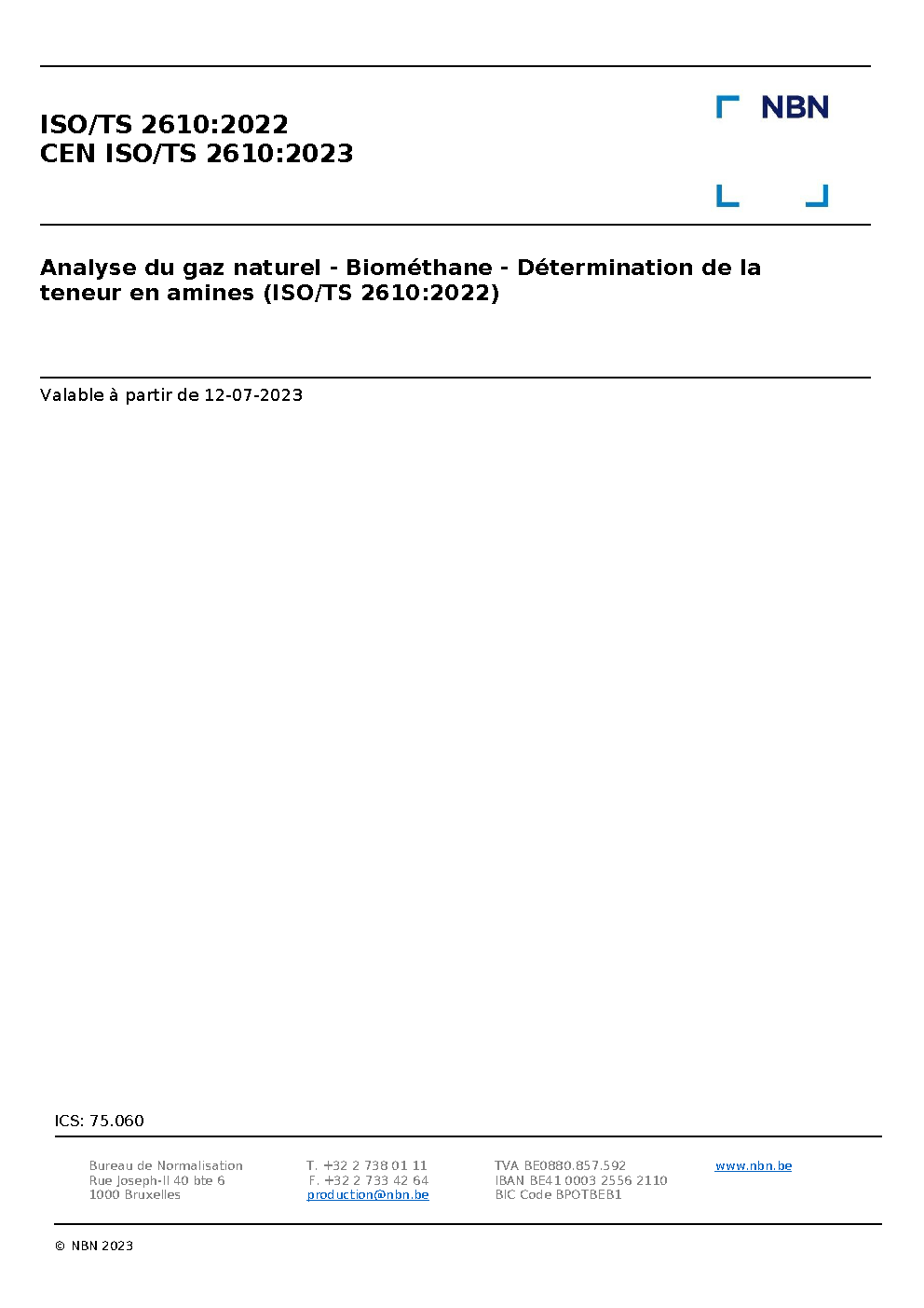 | Publisher | Bureau de Normalisation Belge (NBN) |
