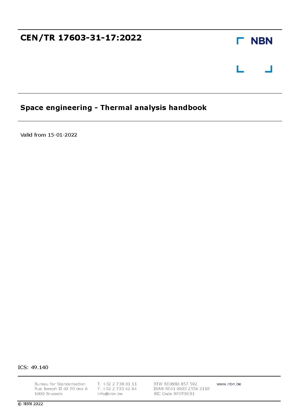 The intended users of the document are people, working in the domain of space systems, who use thermal analysis as part of their work. These users can be in industry, in (inter)national agencies, or in academia. Moreover, the guidelines are designed to be useful to users working on products at every level of a space project - that is to say at system level, sub-system level, unit level etc.