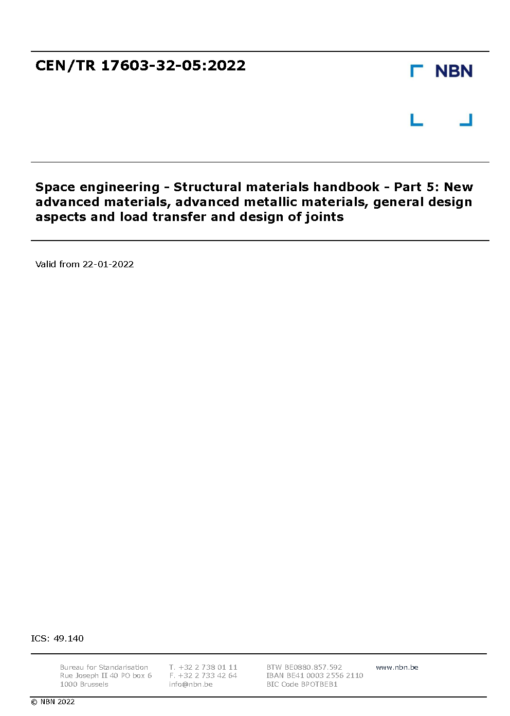 Space engineering - Structural materials handbook - Part 5: New advanced materials, advanced metallic materials, general design aspects and load transfer and design of joints