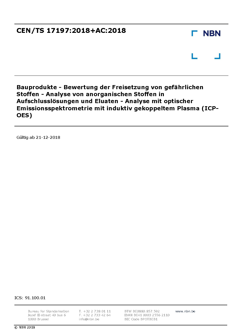 | Publisher | Bureau de Normalisation Belge (NBN) |