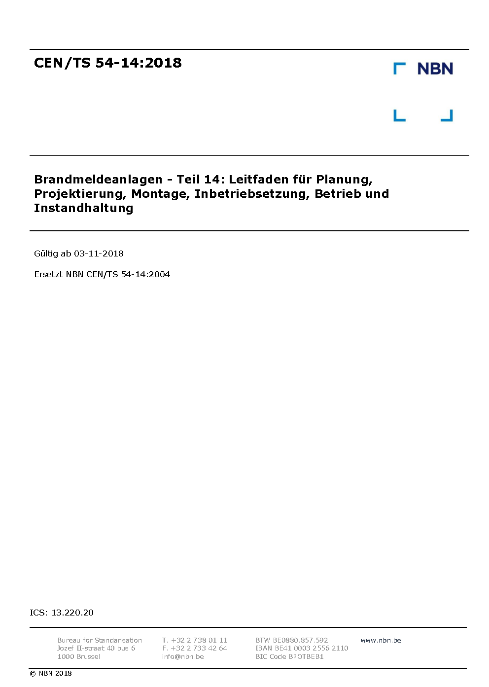 | Publisher | Bureau de Normalisation Belge (NBN) |