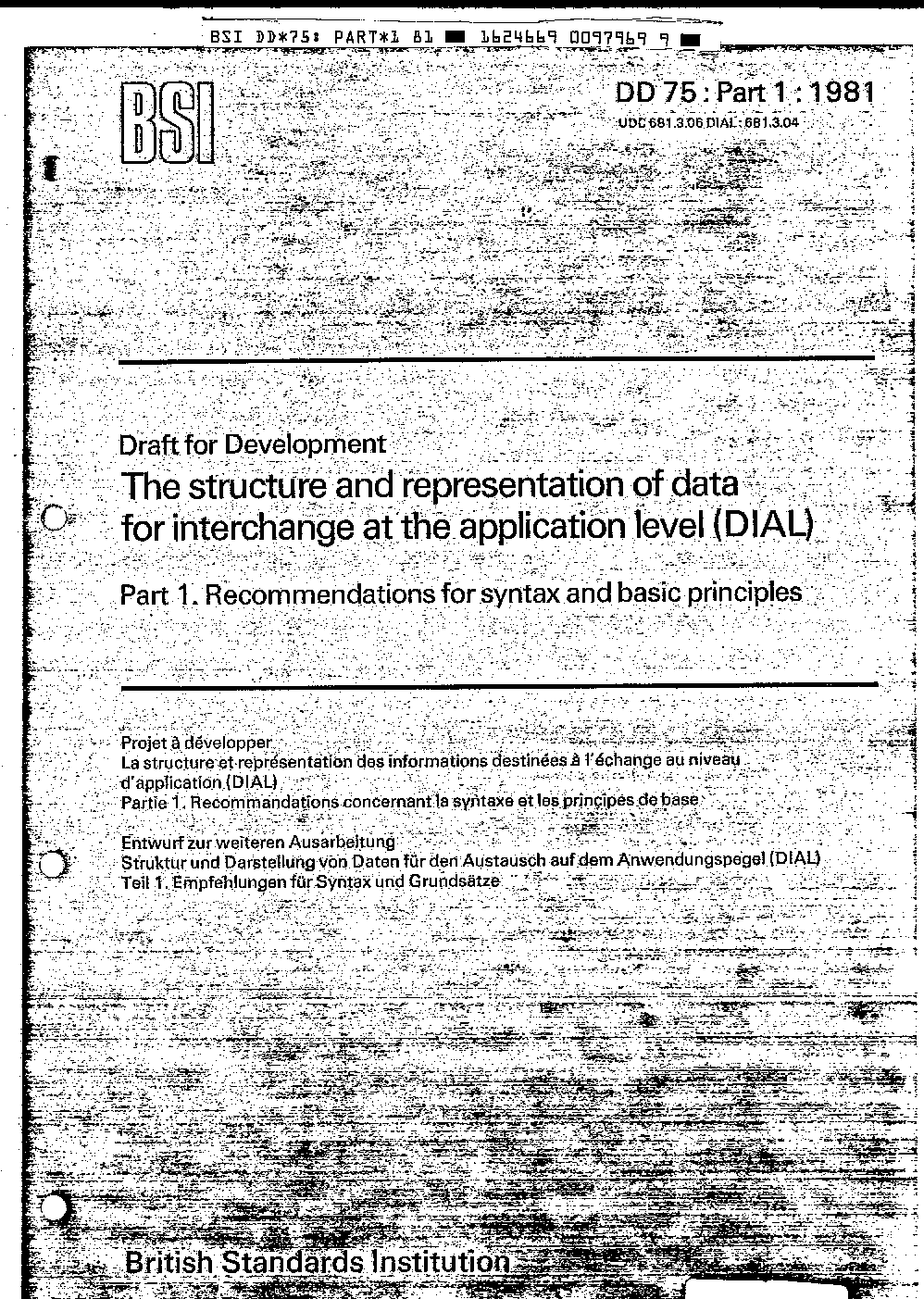 The structure and representation of data for interchange at the application level (DIAL). Recommendations syntax basic principles