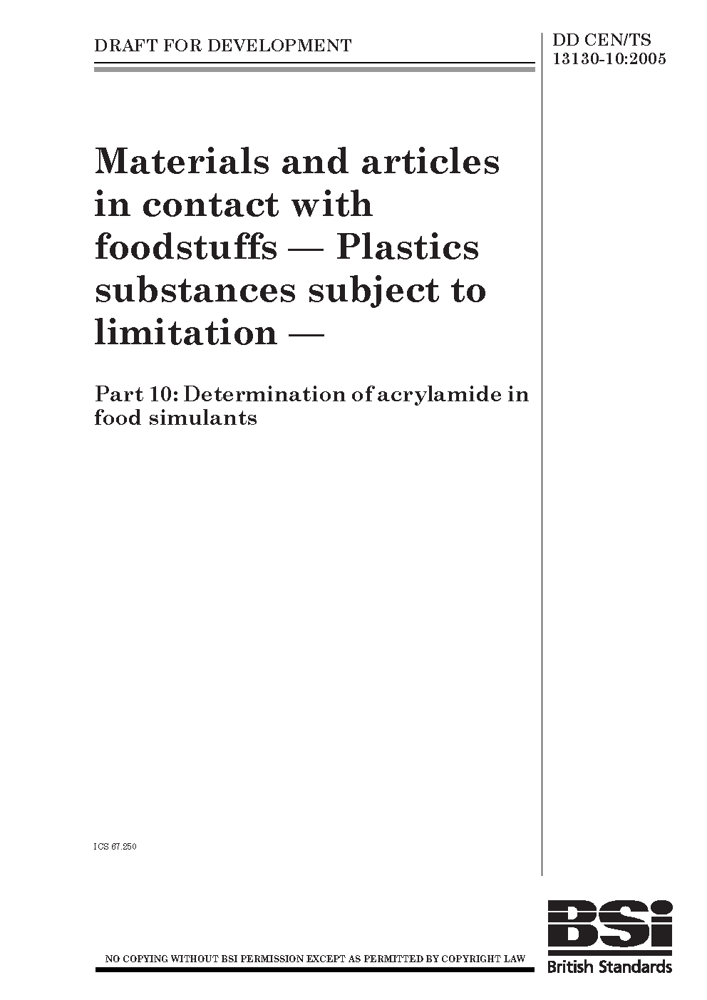 Materials and articles in contact with foodstuffs. Plastics substances subject to limitation Determination of acrylamide food simulants