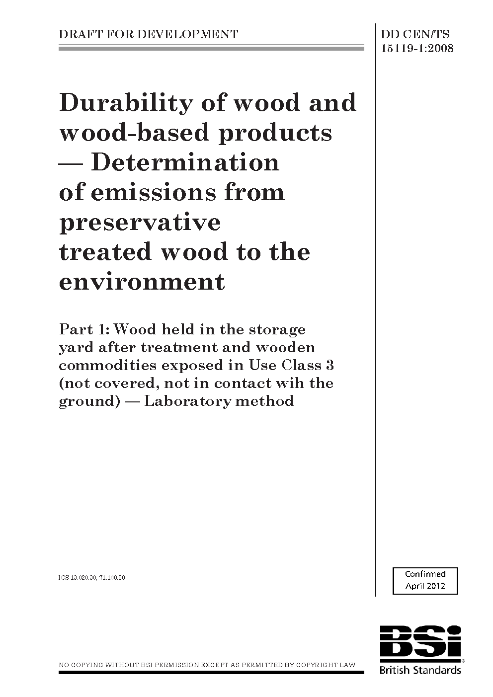 DD CEN/TS 15119-1:2008