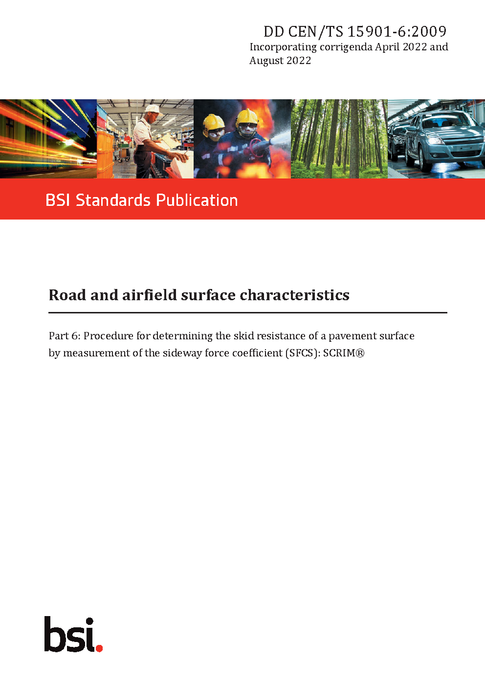 Road and airfield surface characteristics Procedure for determining the skid resistance of a pavement by measurement sideway force coefficient (SFCS): SCRIM®