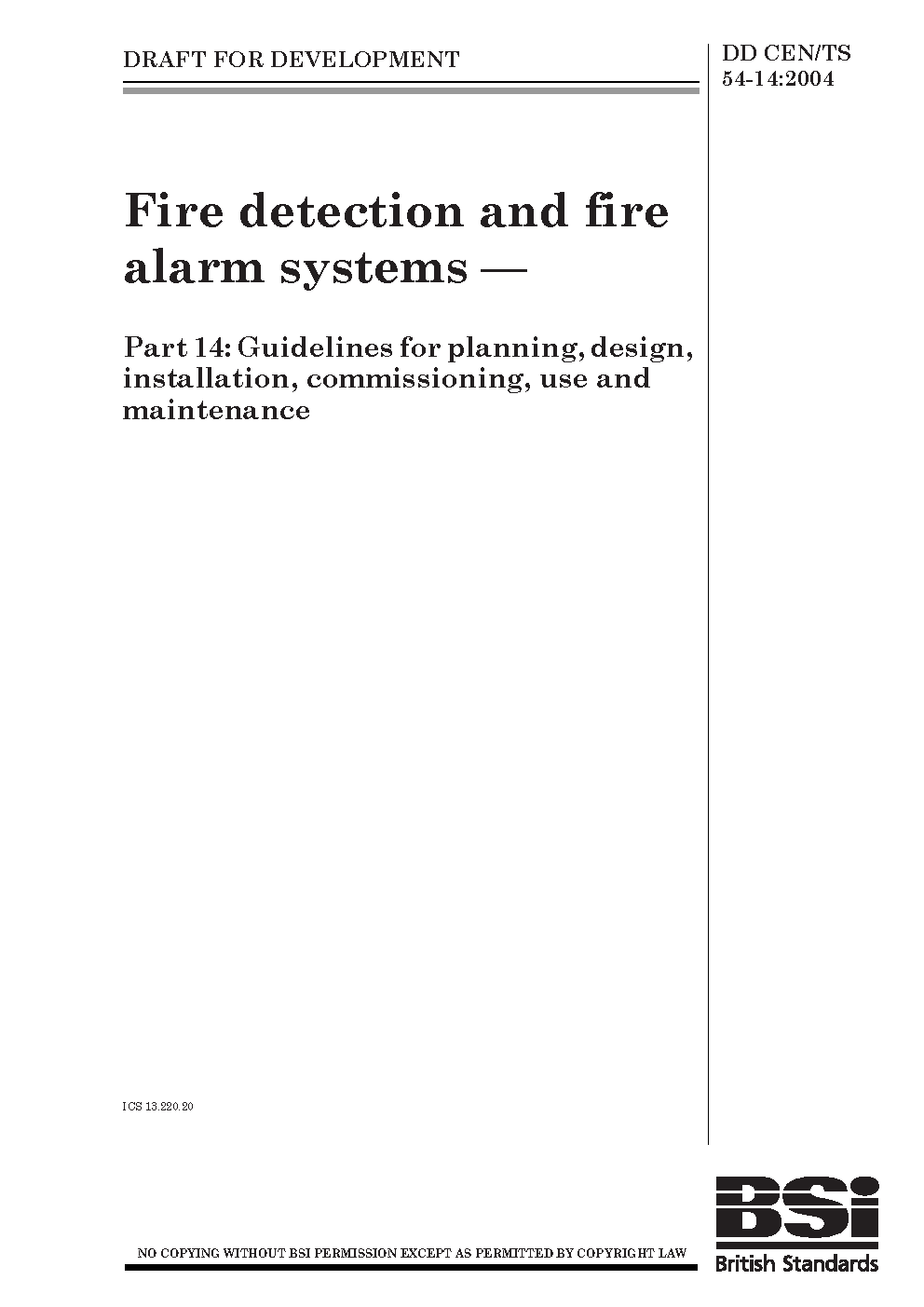Fire detection and fire alarm systems Guidelines for planning, design, installation, commissioning, use maintenance