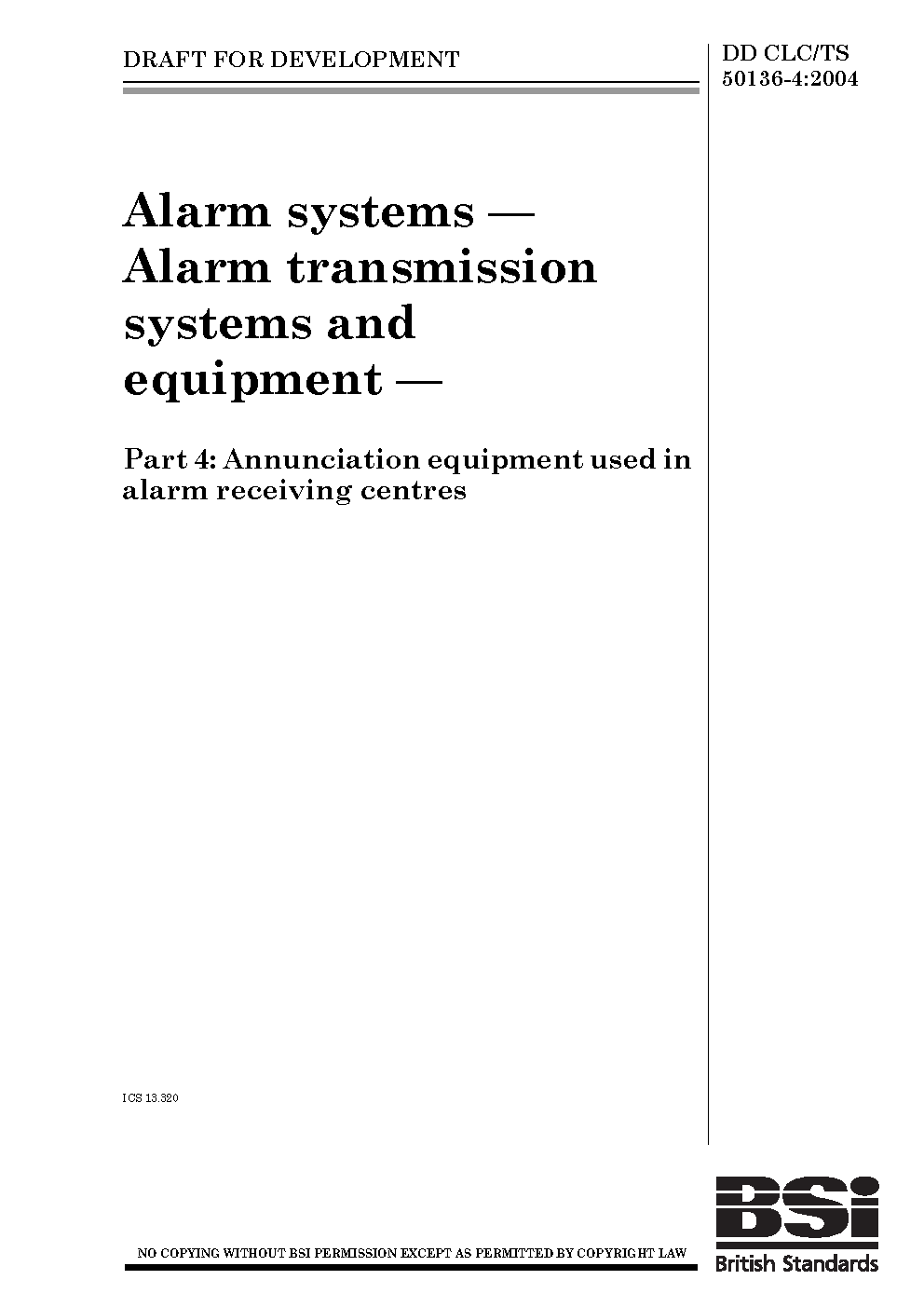 DD CLC/TS 50136-4:2004