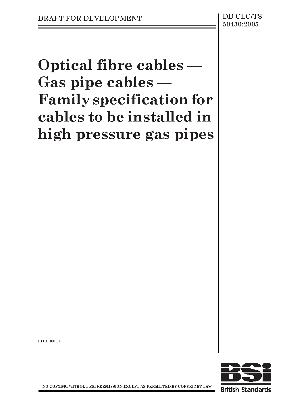 Optical fibre cables. Gas pipe cables. Family specifications for cables to be installed in high pressure gas pipes