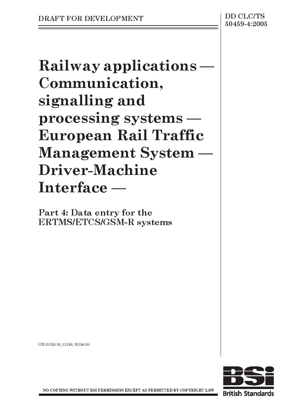 Railway applications. Communication, signalling and processing systems. European rail traffic management system. Driver-machine interface Data entry for the ERTMS/ETCS/GSM-R systems