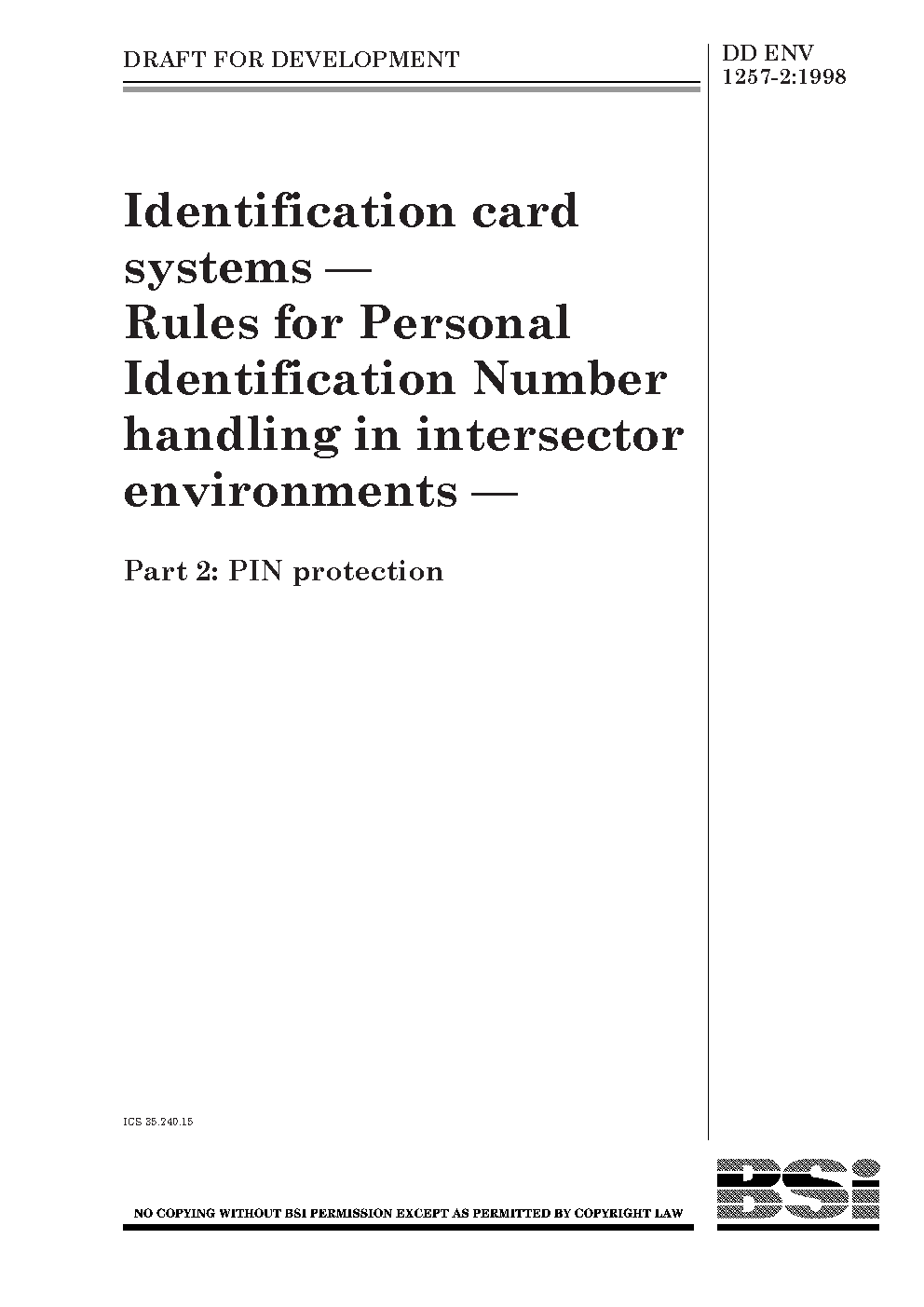 Identification card systems.Rules for personal identification number (PIN) handling in intersector environments PIN protection