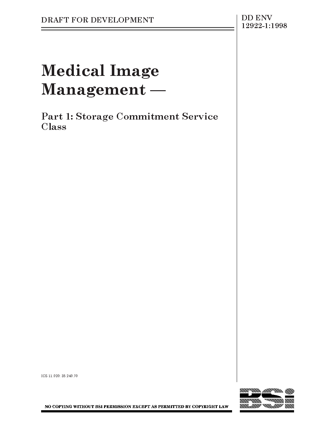 Medical image management. Storage commitment service class