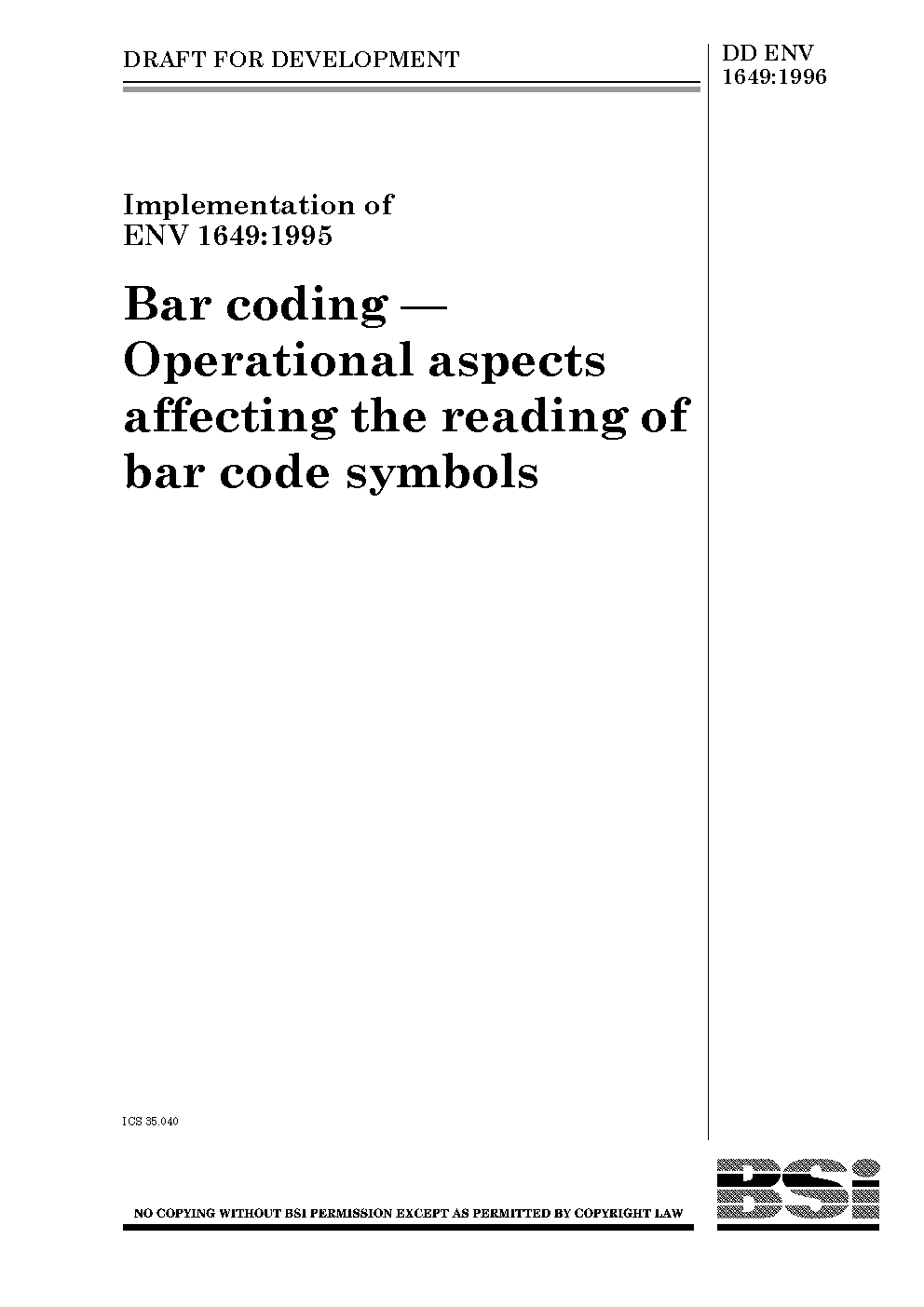 Bar coding. Operational aspects affecting the reading of bar code symbols