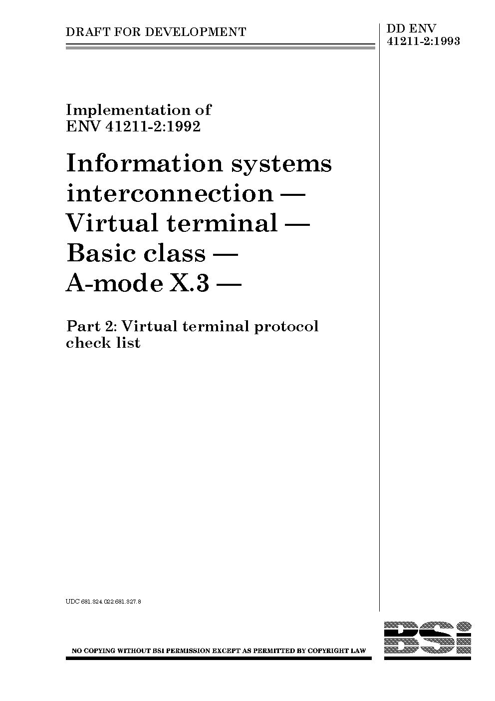Information systems interconnection. Virtual terminal. Basic class. A-mode X.3 terminal protocol check list