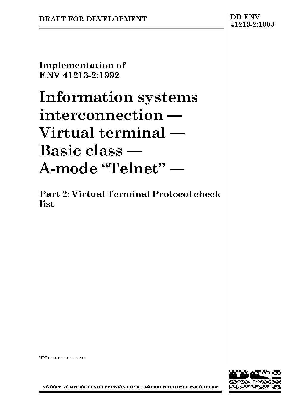 Information systems interconnection. Virtual terminal. Basic class. A-mode Telnet Terminal Protocol check list