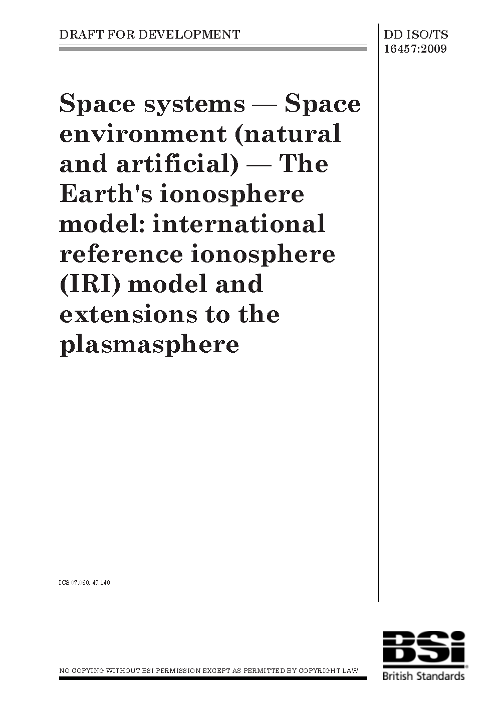 Space systems. Space environment (natural and artificial). The Earth's ionosphere model. International reference ionosphere (IRI) model and extensions to the plasmasphere
