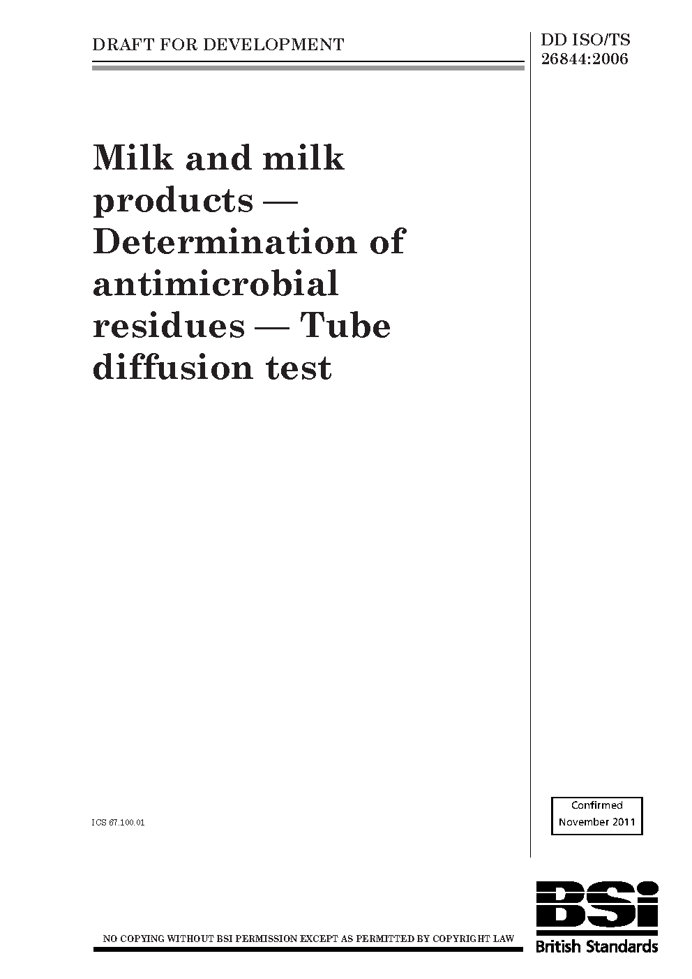 Milk and milk products. Determination of antimicrobial residues. Tube diffusion test