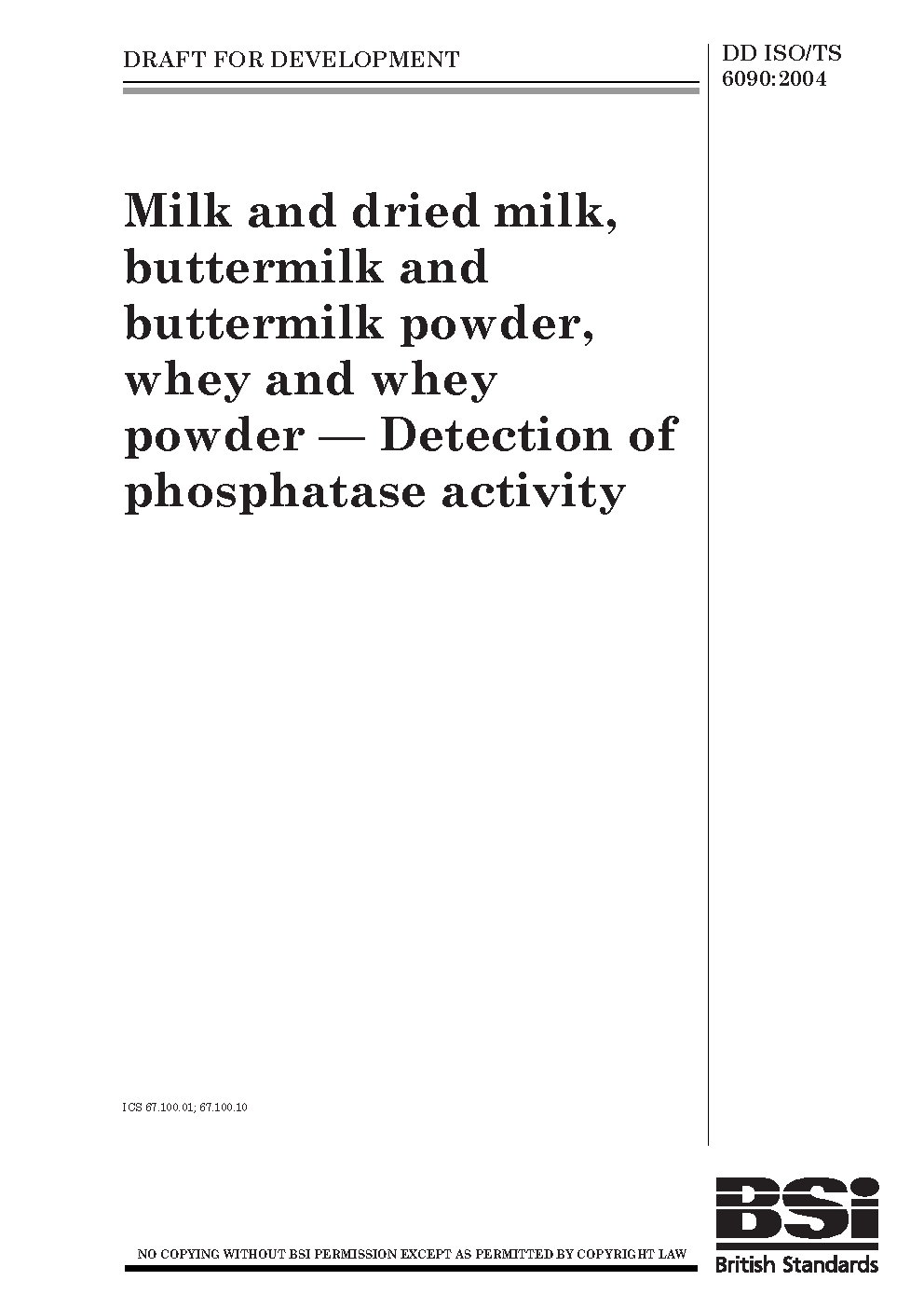 Chemical analysis and testing;Determination of content;Milk;Phosphatase;Food products;Dried milk;Powdered foods;Buttermilk;Dairy products;Enzymes;Whey
