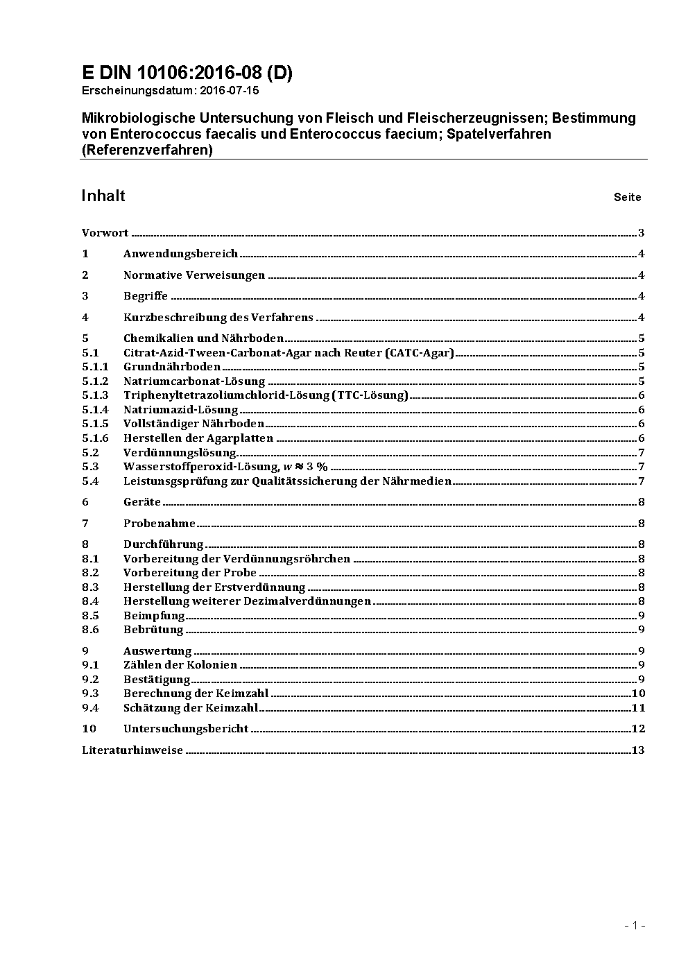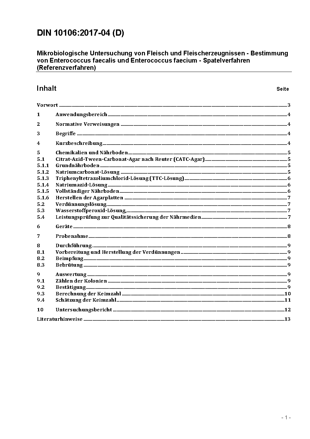 This standard specifies a method for the determination of enterococci within group D streptococci applicable to meat and meat products. Cultivation on a selective medium. Calculation of the number of enterococci per ml or g of sample out the grown typical colonies.