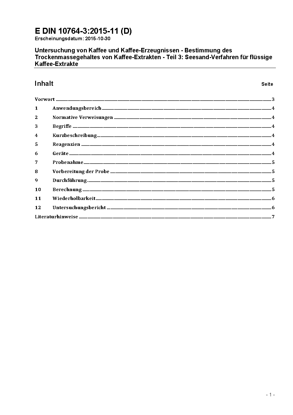The standard specifies requirements for the determination of dry matter content of liquidcoffee extracts by sea sand method and is applicable for soluble to pasty coffee extracts. The method is intended to be a routine method.