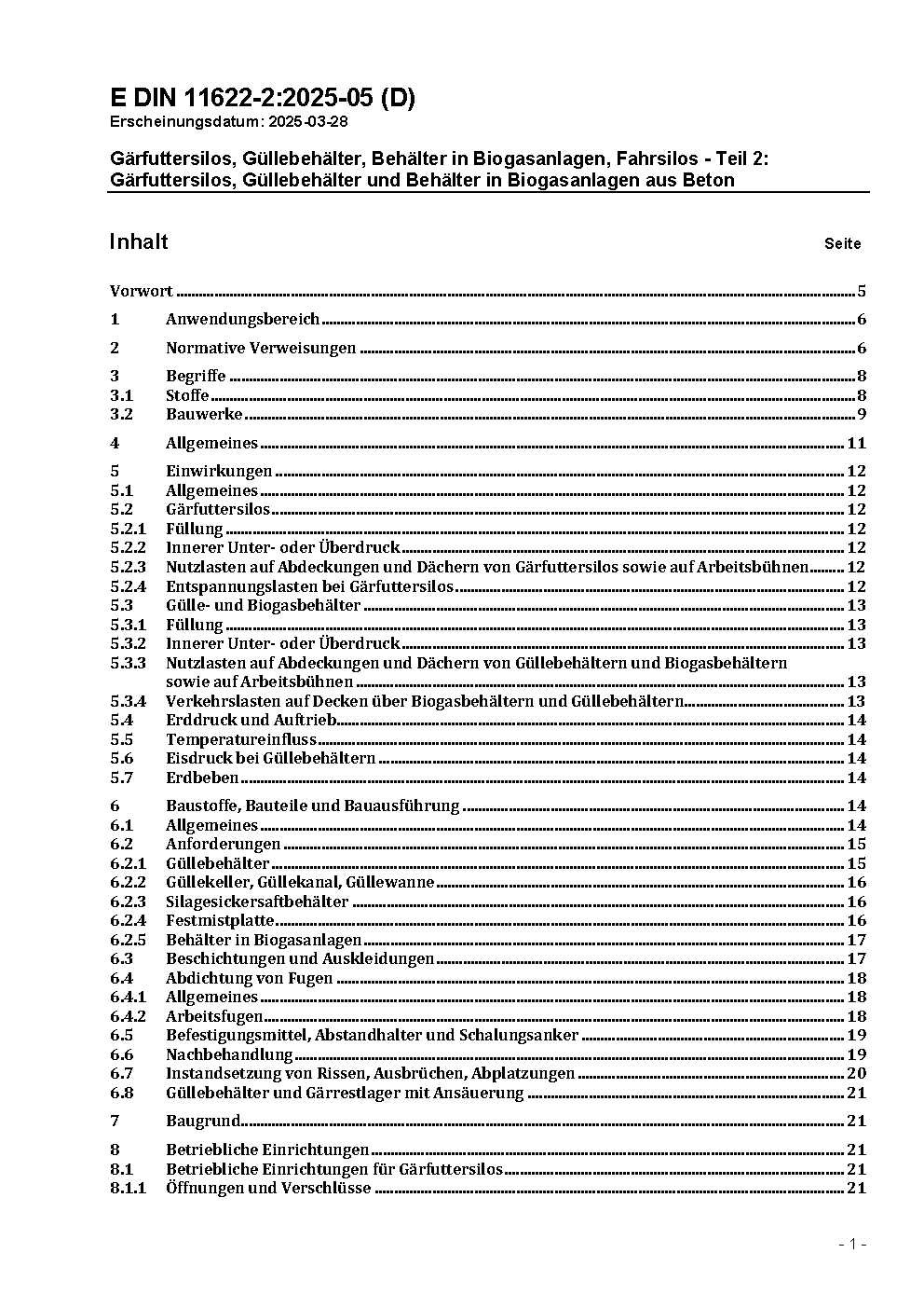 This document deals with Silage and liquid manure containers and containers in biogas plants made of concrete.