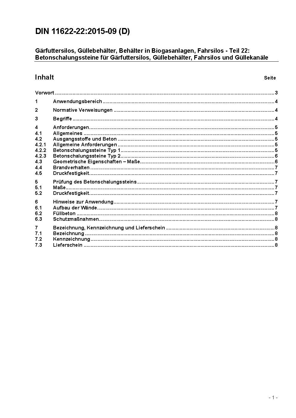 This document applies to concrete blocks acting as lost formwork to be used as silagesilos and liquid manure containers and drains according to DIN 11622-2.