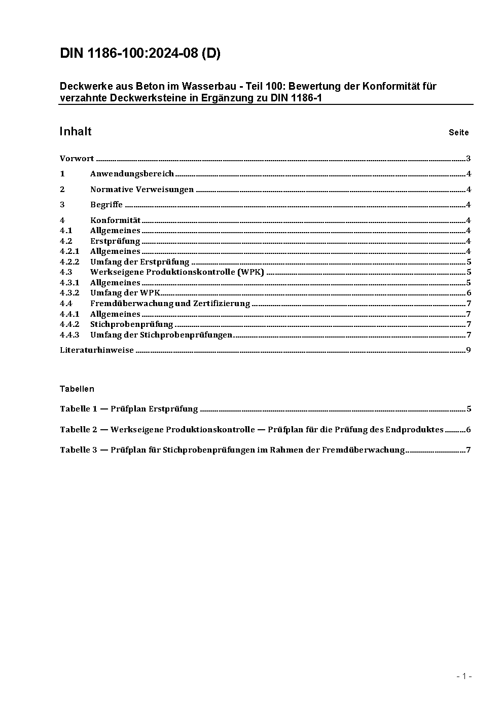 Verzahnte Deckwerke aus Beton im Wasserbau - Teil 100: Bewertung der Konformität für verzahnte Beton-Deckwerksteine im Wasserbau in Ergänzung zu DIN 1186-1
