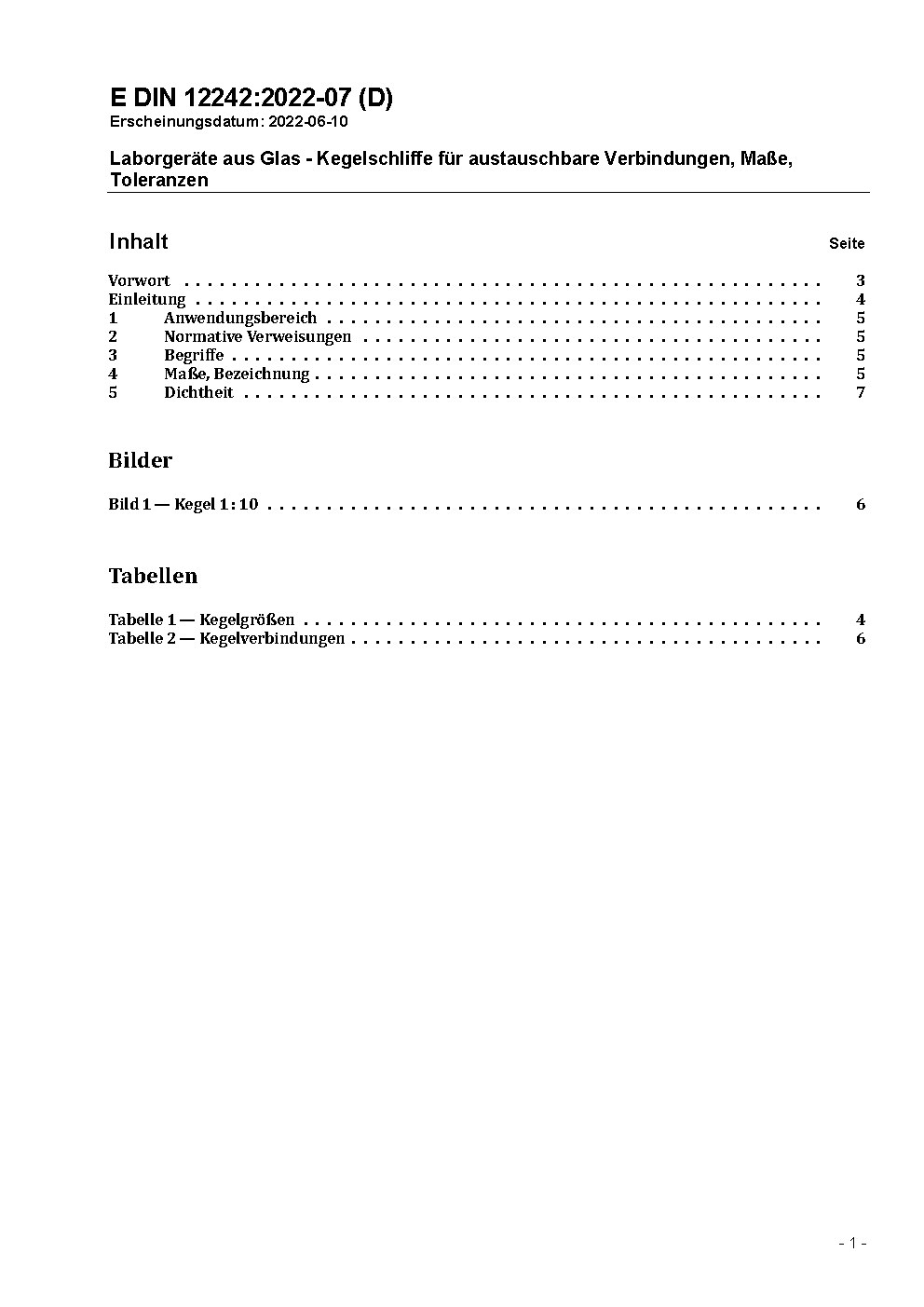 Laborgeräte aus Glas - Kegelschliffe für austauschbare Verbindungen, Maße, Toleranzen