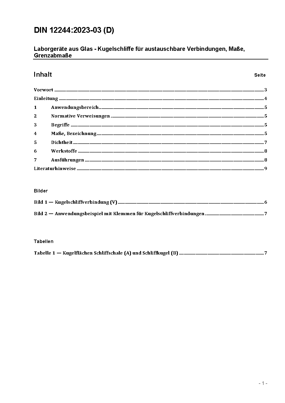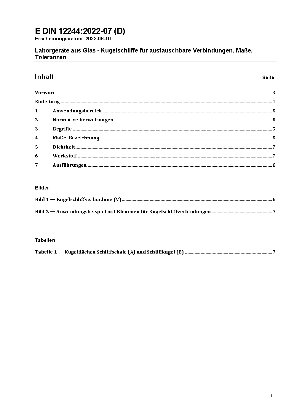 Laborgeräte aus Glas - Kugelschliffe für austauschbare Verbindungen, Maße, Grenzabmaße