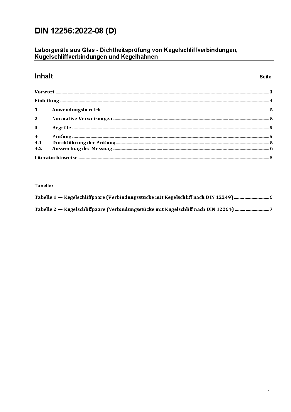 Laborgeräte aus Glas - Dichtheitsprüfung von Kegelschliffverbindungen, Kugelschliffverbindungen und Kegelhähnen
