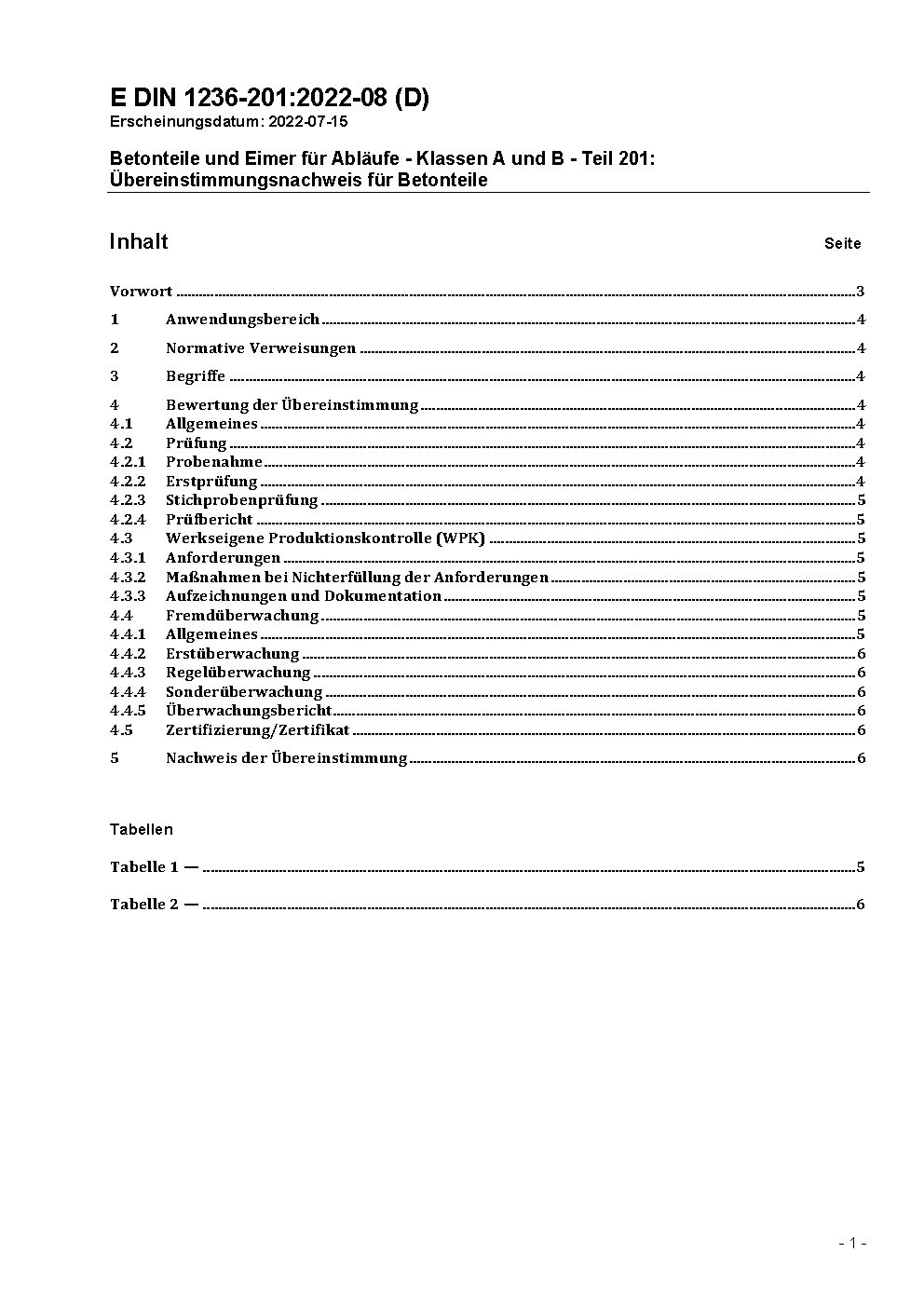 Betonteile und Eimer für Abläufe - Klassen A und B - Teil 201: Übereinstimmungsnachweis für Betonteile / Achtung: Gilt in Verbindung mit DIN 1236-2 (1981-11)