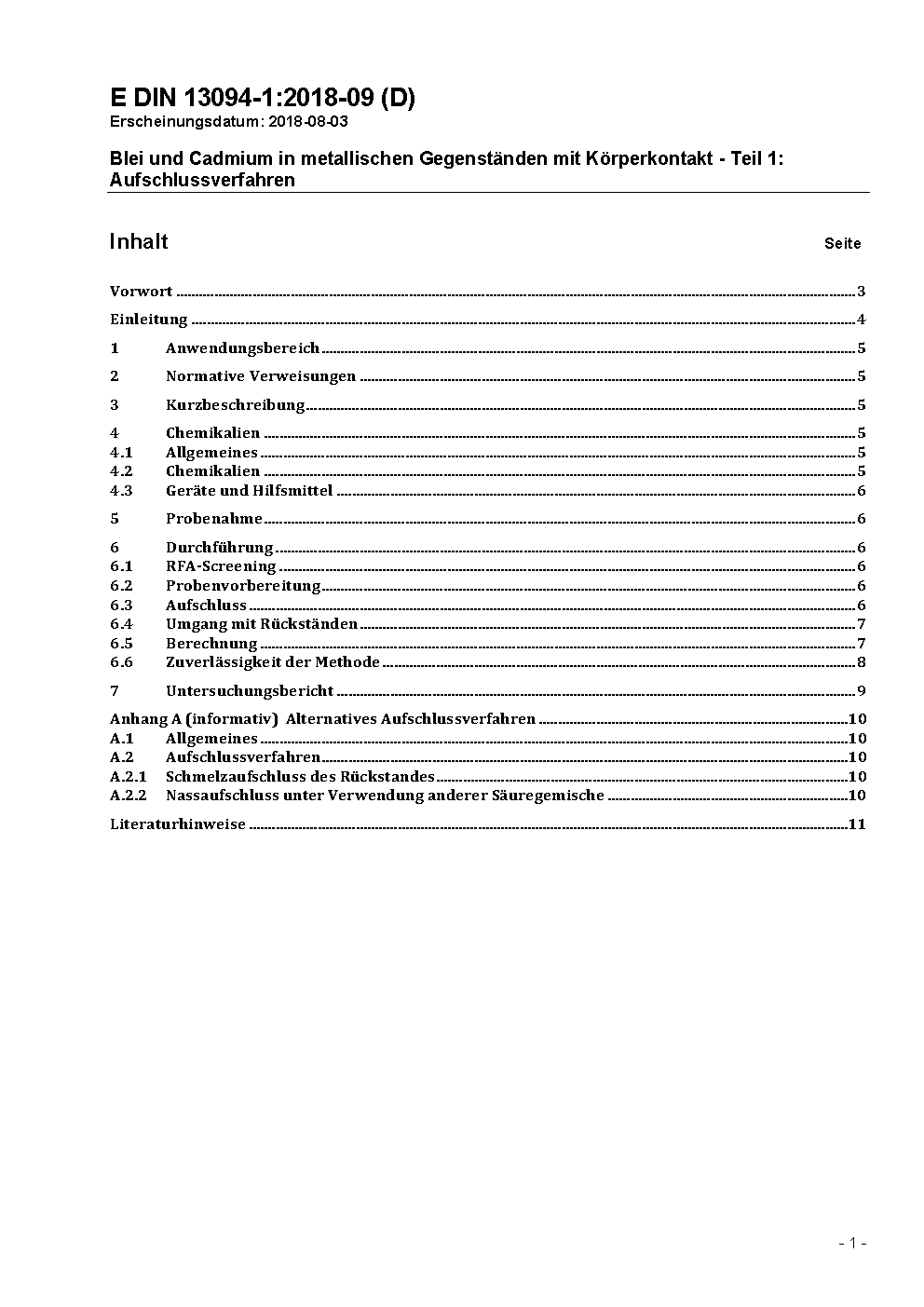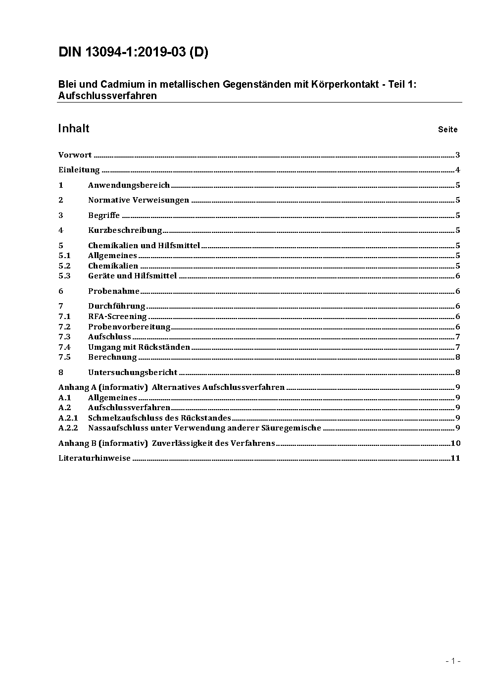 Blei und Cadmium in metallischen Gegenständen mit Körperkontakt - Teil 1: Aufschlussverfahren