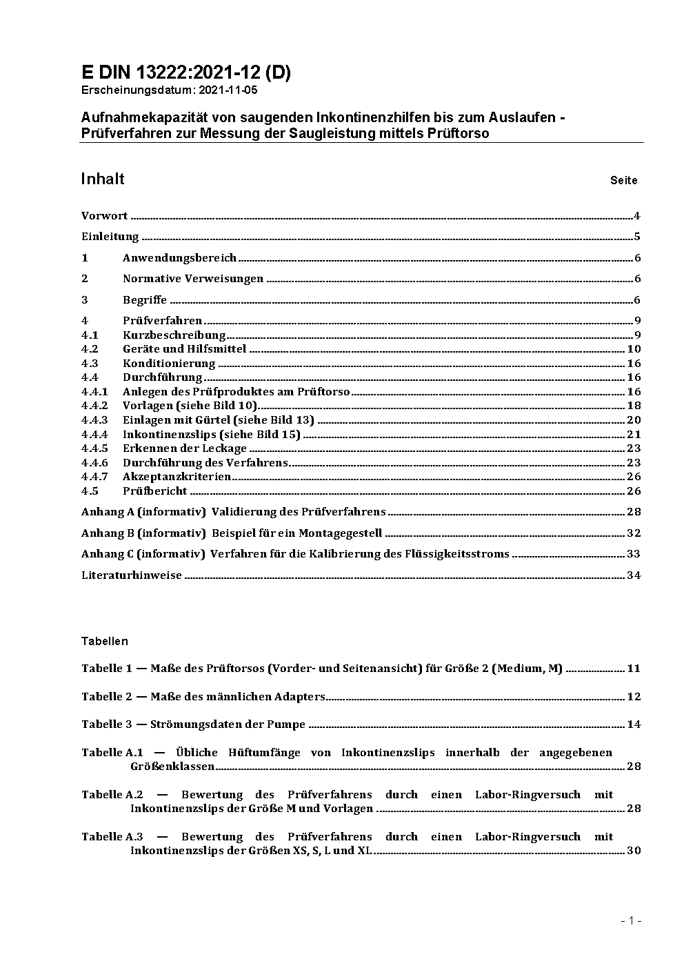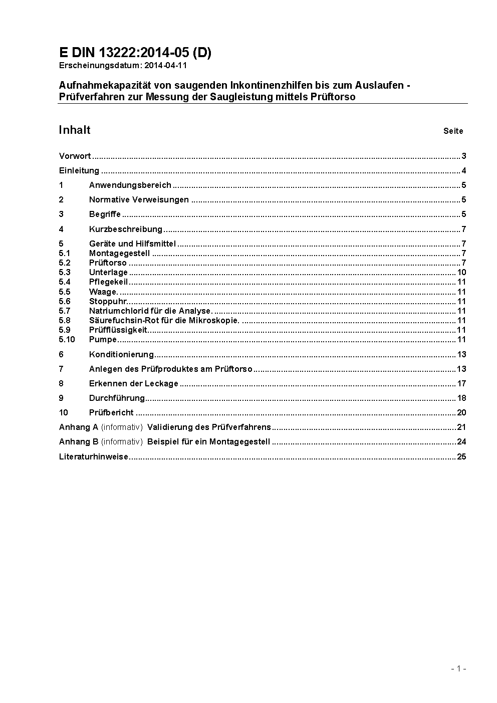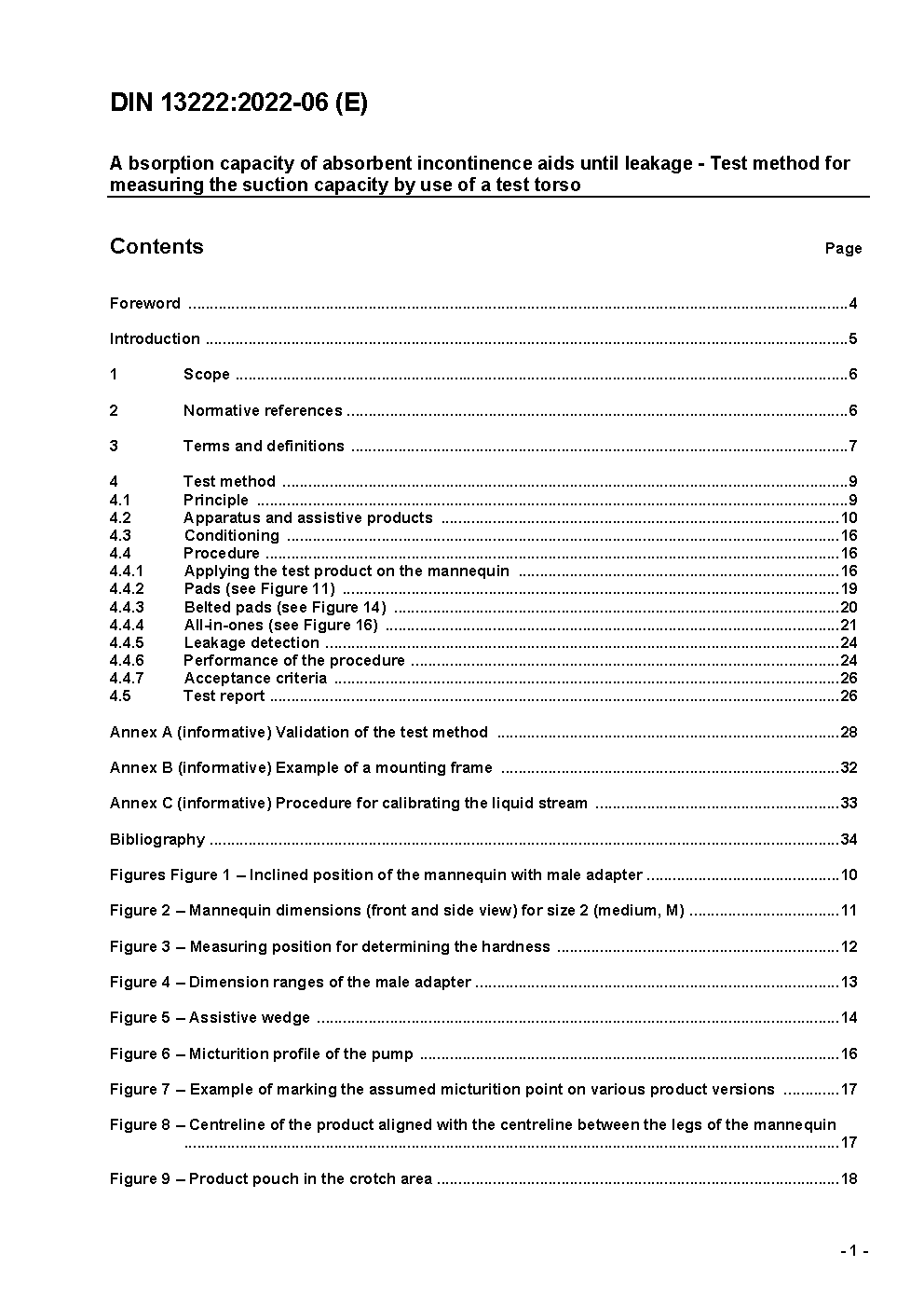 This standard determines the assessment of the suction capacity of incontinence products for moderate and heavy incontinence. It has been validated for all sizes of incontinence pants and templates and for the value of the absorption capacity until leakage (ABL, absorption before leakage) which is between 300 ml and 1100 ml. This test method was developed for the measurement of the suction capacity of incontinence products for bedridden adults. The test method is not applicable to products for infants or babies. This test method is also not applicable to pull-up products and incontinence products for light incontinence. Using this standard, it is possible to measure the suction capacity of incontinence products and to assess the effects of additional design features in the design of the product such as improved absorption materials, cuffs, etc. However, the test method does not determine measurements for other user-based values that should be considered regarding the purchase decision, such as comfort, discretion, skin compatibility, noise, etc. Further discussion of these values can be found in directive ISO 16021 (Urine-absorbing aids - General guideline for assessment), which should be consulted in conjunction with this standard regarding the purchasing decision.
