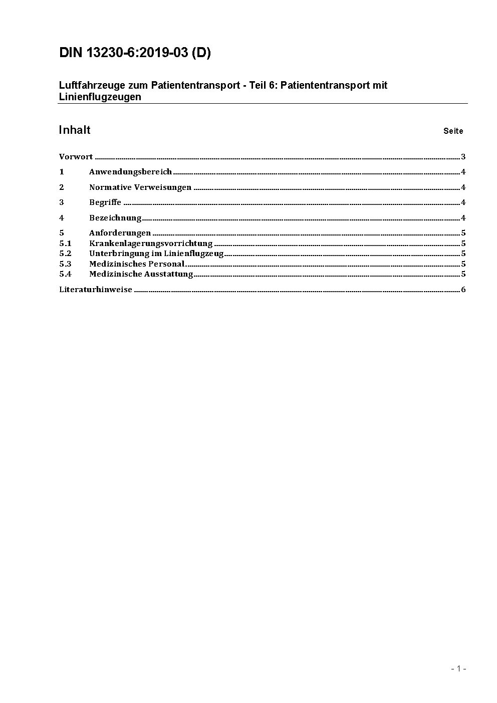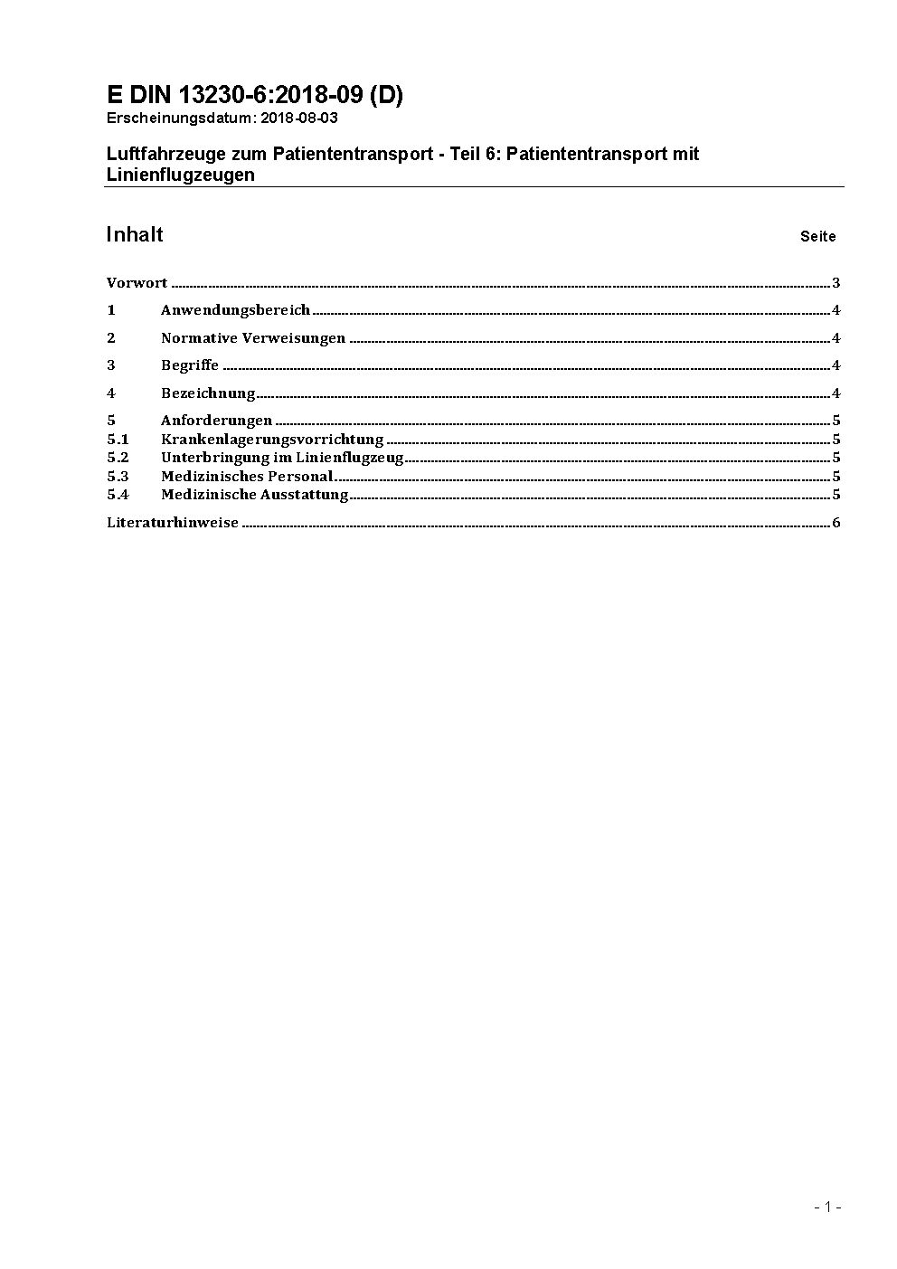 The document applies to the transportation of patients in scheduled (service) planes especially with regard to stretchers installed in place of passenger seats in such aircrafts. If after medical indication patients are transportet on standard seats the specified requirements also apply for their medical crew and equipment.
