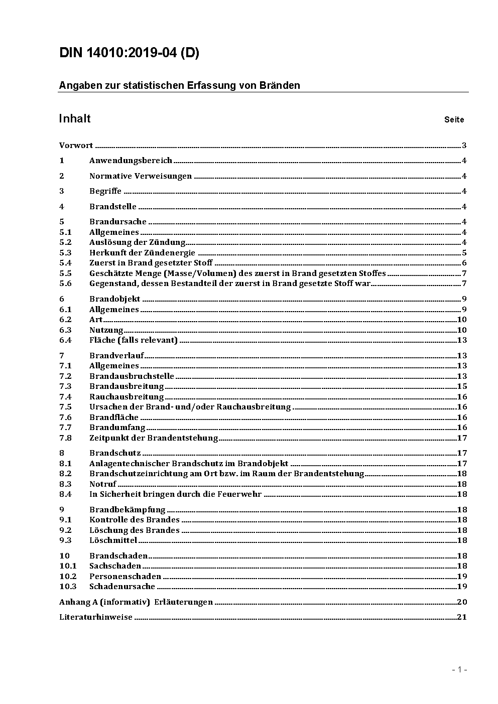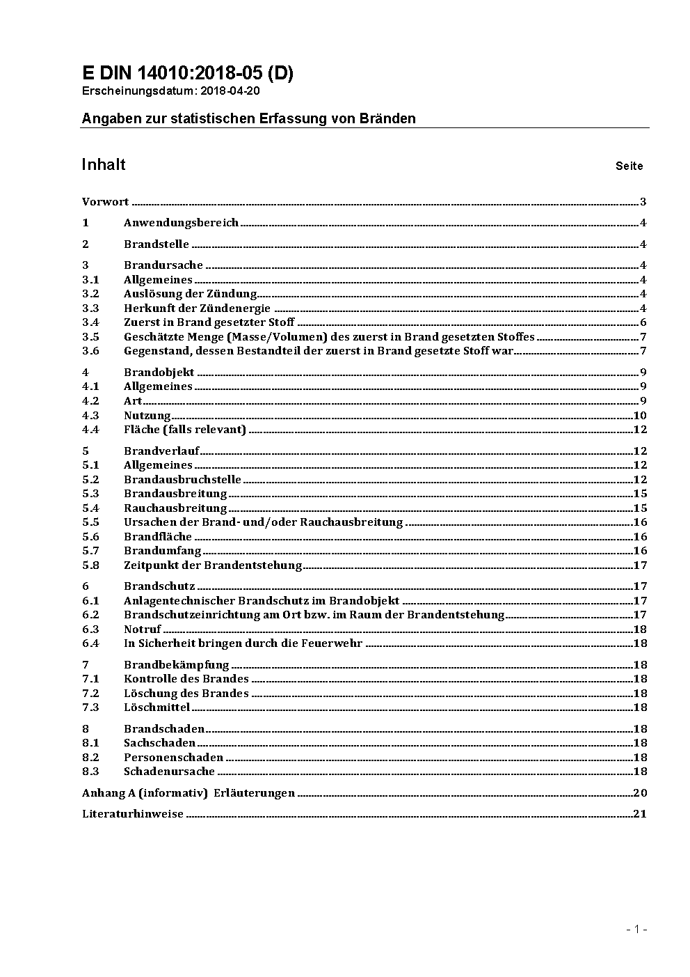 The document is designed for uniform marking and evaluation of fires in virtually all aspects of firefighting, e. g. for reports, statements for fire statistic or fire insurance.