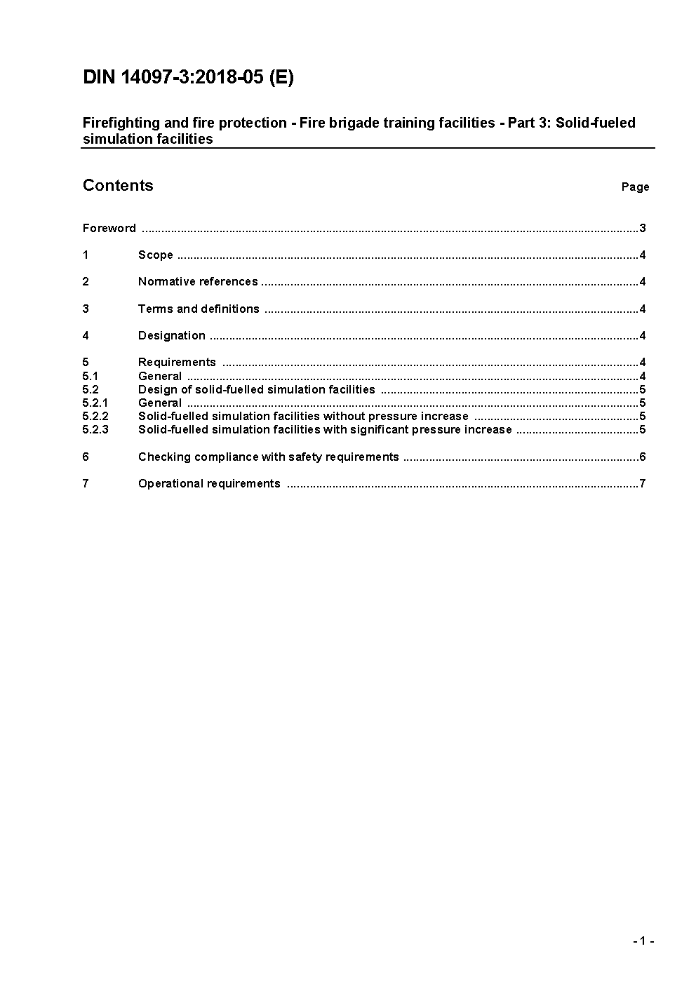 The document enables architects, designers, manufacturers, fire brigades and administrations to design appropriately solid-fueled simulation facilities for training the members of fire brigades in fire fighting and to manufacture and operate this facilities in compliance to safety regulations.