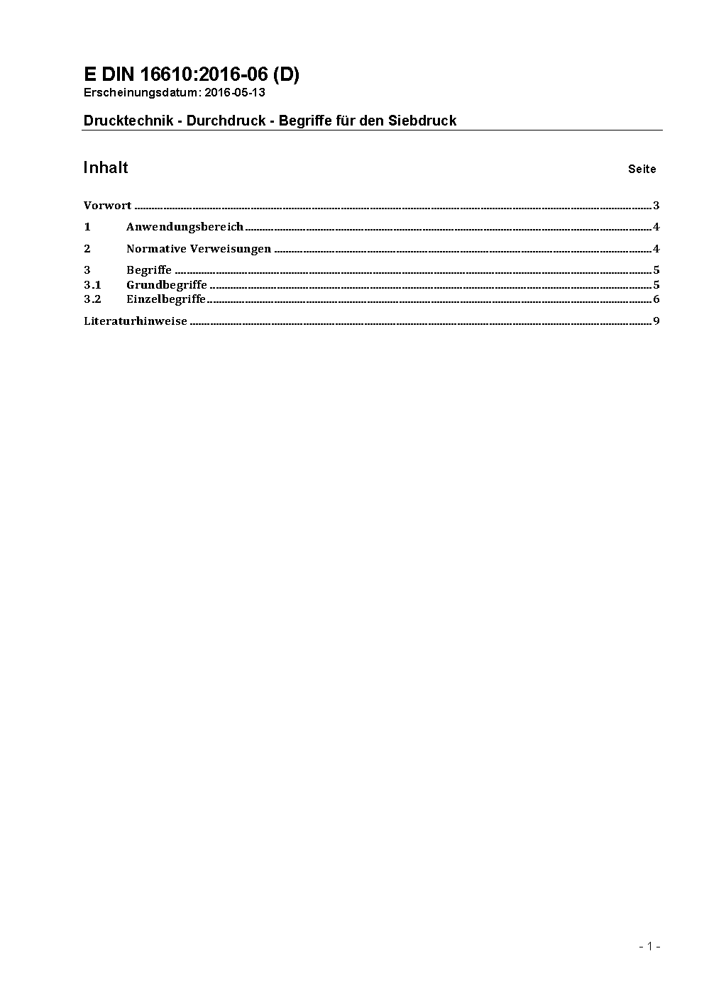 Die Norm soll die Fachsprache im festgelegten Rahmen vereinheitlichen, um eine unmißverständliche Anwendung von Fachbegriffen in Betrieb, Ausbildung und Wissenschaft sicherzustellen. Sie enthält Begriffe für den Siebdruck nach dem neuesten Stand der Technik.