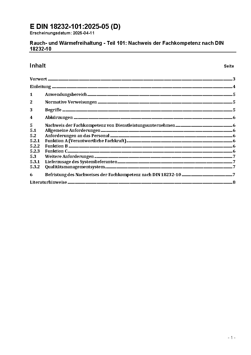 Rauch- und Wärmefreihaltung - Teil 101: Nachweis der Fachkompetenz nach DIN 18232-10