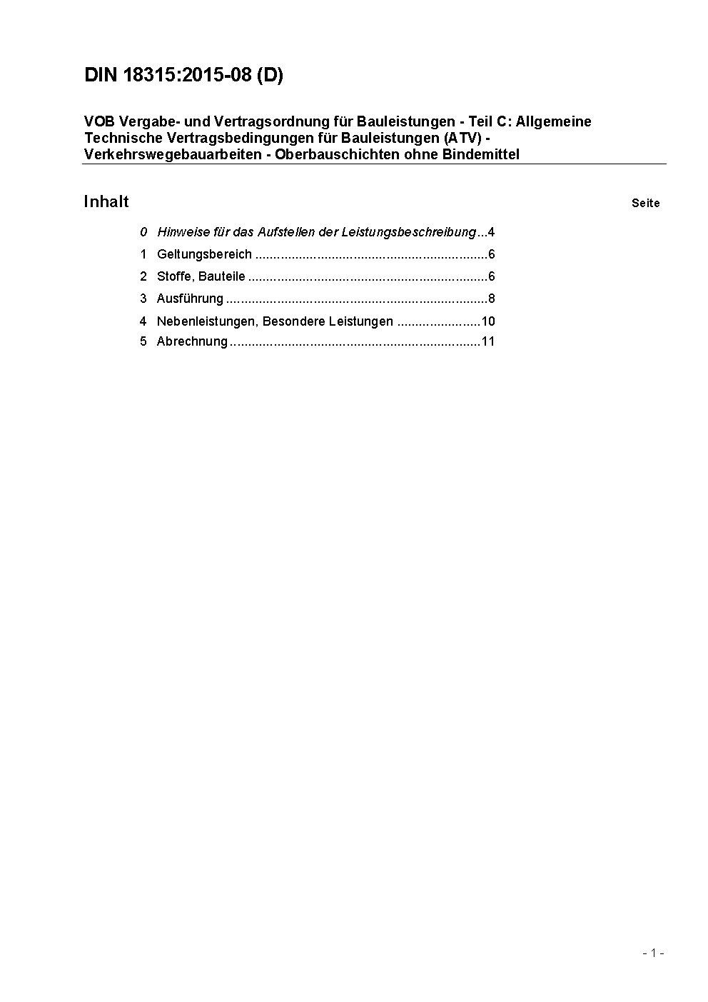 German construction contract procedures (VOB) - Part C: General technical specifications in construction contracts (ATV) - Road construction - Surfacings without binder