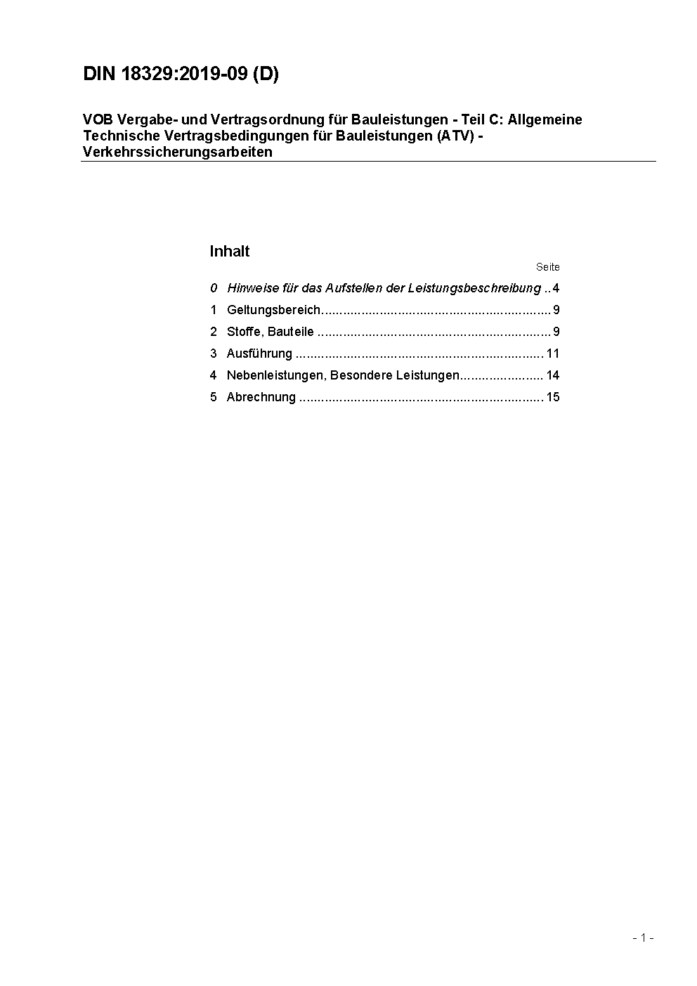 German construction contract procedures (VOB) - Part C: General technical specifications in construction contracts (ATV) - Management of road safety measures at road works